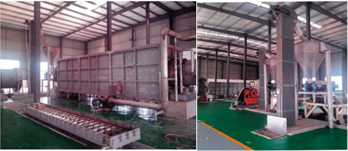環(huán)保金礦選礦劑的生產是要求將五種固體原料按照一定的配比要求,進行高溫長時間的混合反應后,在高溫段轉化成高溫液體,經過冷卻并機械破碎后轉化成固體小顆粒,包 裝出廠銷售與使用。其中,需要經過高溫反應與混合的物料 有三種,另外兩種物料在粉碎后另外添加并混合均勻。